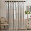 Decorate your window with style and sophistication with these luxury semi-blackout Jacquard fabric curtain panels featuring Silver/Green background and gold geometric shapes.